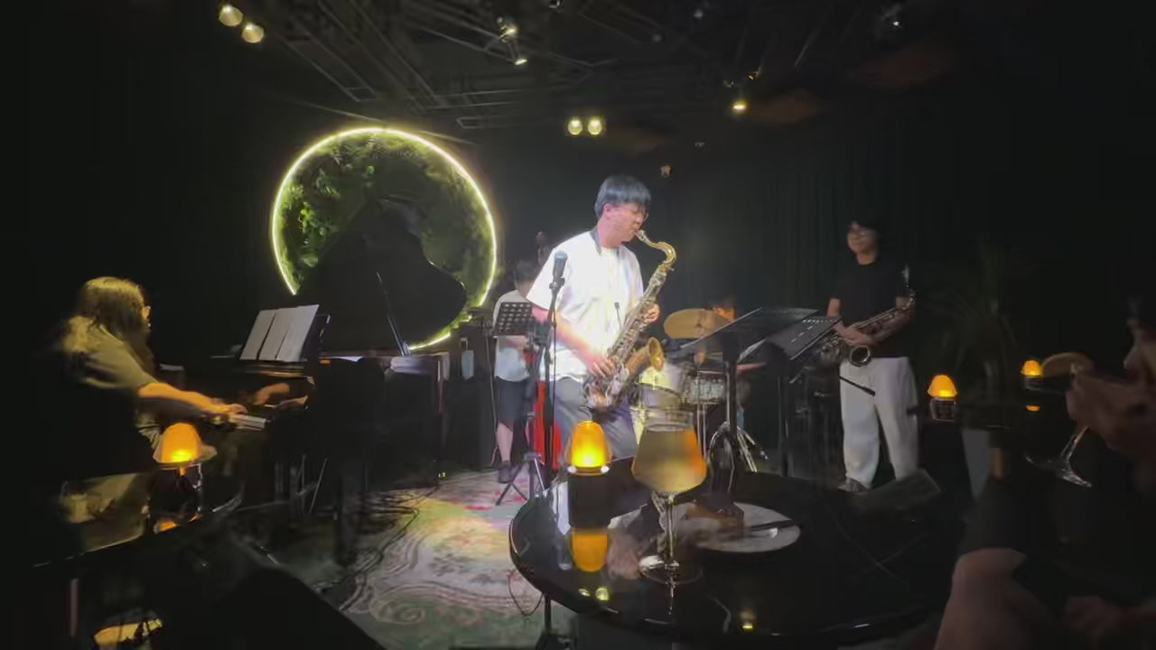 點知同佢交談後先發現原來佢並沒有出國讀書,佢呢一身鼓技都係自己苦練出嚟,令我哋慨嘆內地爵士音樂教育嘅蓬勃同埋樂手程度嘅出色。